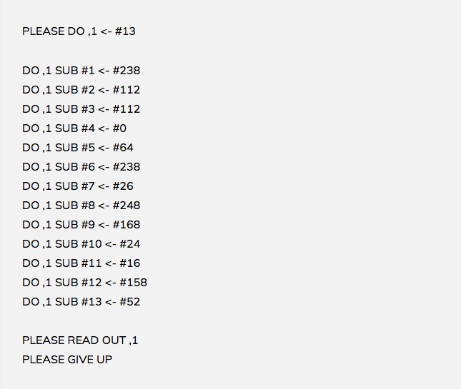 INTERCAL adalah bahasa compiler tanpa akronim yang dapat diucapkan. INTERCAL merupakan bahasa pemrograman esoterik yang dibuat oleh Don Woods dan James M. Lyon. Pada saat yang sama, ia mengolok-olok aspek berbagai bahasa pemrograman.