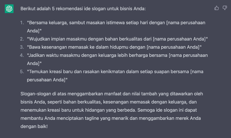 Jika kalian kesulitan membuat tagline, disini kalian bisa bertanya melalui ChatGPT seperti ini.
