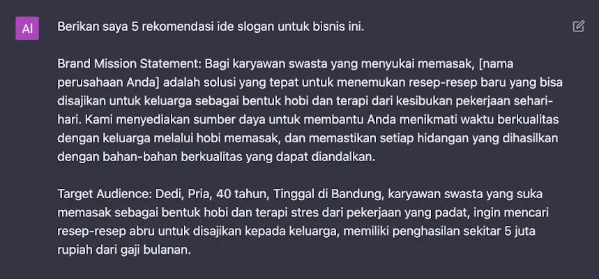 Ilustrasi Chatbot ChatGPT yang merespon dalam membuatkan ide slogan. Foto: ChatGPT.