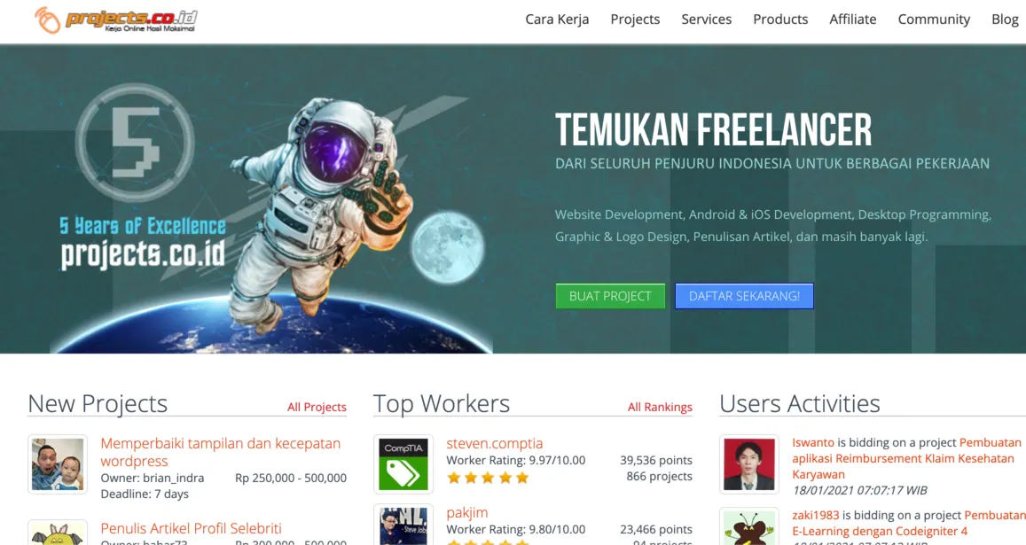 Projects.co.id sendiri akan menghadirkan lowongan pekerjaan dari dalam negeri. Sedangkan untuk jenis pekerjaan lepas di projects.co.id yang bisa kamu dapatkan ini bermacam-macam. Mulai dari pekerjaan design, translator, writing dan lain sebagainya. Tidak hanya menghadirkan beragam pekerjaan lepas, pengguna situs projects juga bisa melakukan transaksi jual-beli produk digital.