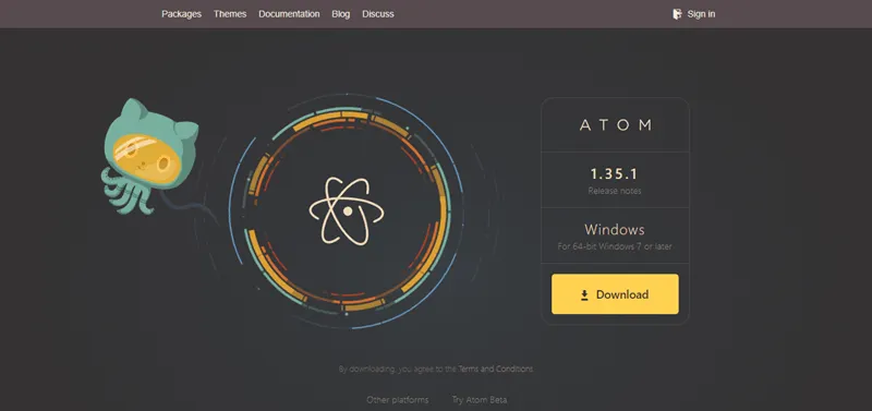 Atom adalah salah satu editor teks paling populer. Atom dikembangkan oleh Github dan merupakan pilihan yang baik untuk proyek kecil dan besar. Ini tersedia di Windows, Linux dan OS X dan dilengkapi dengan antarmuka pengguna yang sangat minimalis.
