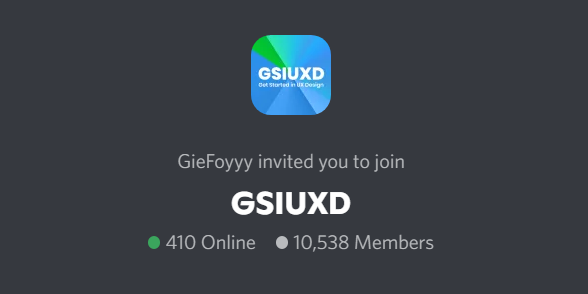 Butuh tempat untuk meningkatkan kemampuan kalian melalui Discord dengan cara berbagi ide dan tips dari para desainer mahir? GSIUXD bisa jadi jawabannya! Get Started in UX Design atau disingkat GSIUXD merupakan komunitas Discord yang bertujuan untuk saling membantu dalam belajar dengan cara berbagi pengalaman serta pengetahuan dari para praktisi desain UX berpengalaman. Ketika bergabung, anggota akan disuguhkan channel yang aktif bertukar ide dan tips seputar desain UX. Uniknya, GSIUXD juga membuat channel khusus untuk membagikan meme mengenai desain. Klik link di sini untuk join.