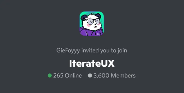 Ketika artikel ini ditulis, lebih dari 3 ribu anggota bergabung ke dalam server Discord IterateUX untuk memperbagus portofolio para praktisi desainer UX. Server ini menyediakan channel untuk portofolio review di mana anggota bisa mendapatkan ulasan portofolio mereka secara gratis, daftar lowongan pekerjaan yang sedang tersedia, resources guna mengumpulkan bahan-bahan desain, dan challenge atau tantangan yang menarik untuk diikuti. Klik link di sini untuk join.