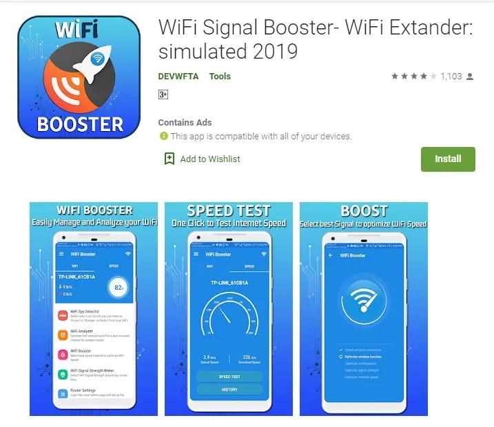 WiFi Network Signal Booster adalah alternatif aplikasi gratis di Play Store yang akan meningkatkan koneksi internetmu melalui jaringan WiFi.