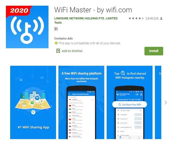 Aplikasi WiFi Master sudah diunduh lebih dari 100 juta kali dan memiliki rating yang sangat baik dari para penggunanya.