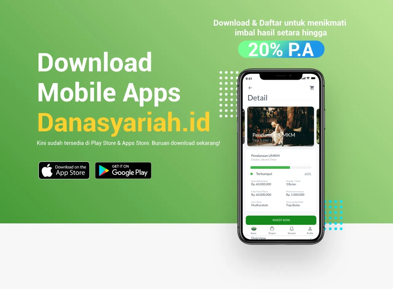 Aplikasi Dana Syariah memungkinkan setiap orang untuk bisa mendapatkan pembiayaan dari dana syariah, maupun turut berkontribusi dalam pendanaan beberapa proyek yang sedang berlangsung.