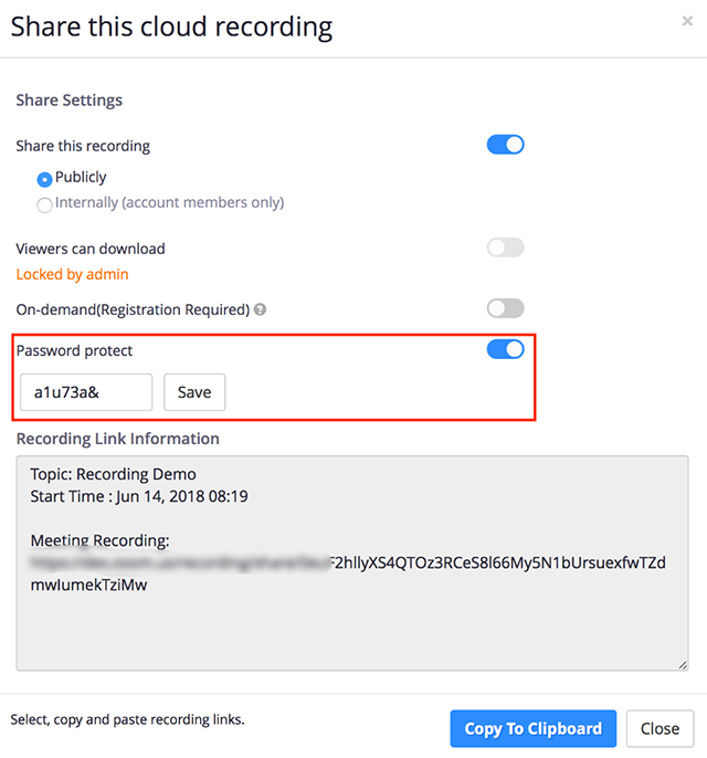 Saat melakukan rapat, opsi perekaman video conference dapat dilakukan melalui layanan cloud yang disediakan oleh Zoom. Rekaman video tersebut akan langsung ditransfer ke layanan cloud sehingga tidak perlu diunggah kembali dari komputer.
