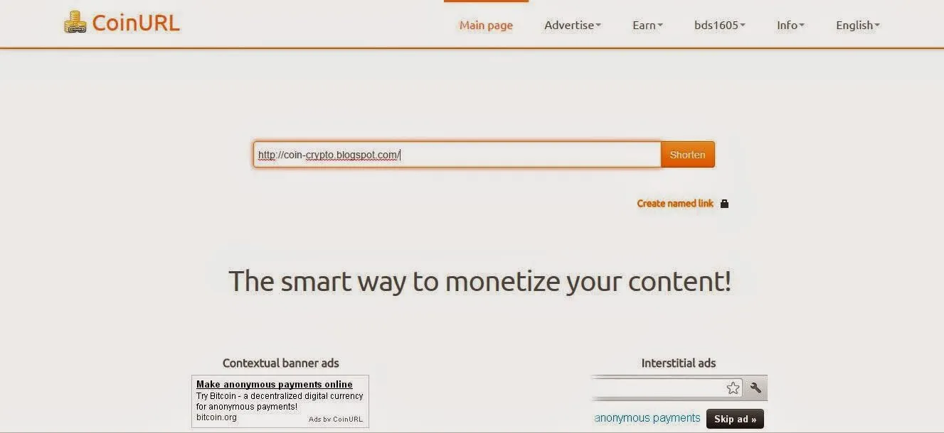 Caranya yakni dengan berafiliasi dengan penyedia iklan, seperti CoinURL dan memasangnya di situs blog atau di berbagai sosial media, seperti Facebook, Instagram atau Twitter. Oh ya, patut diingat untuk menggunakan CoinURL kalian harus menggunakan domain berupa .com, .net dan lainnya. Yang pasti bukan blog gratisan, ya!