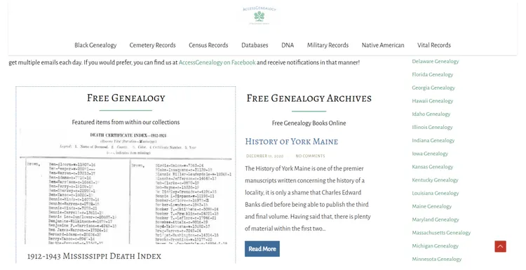 Pada situs ini, kamu akan menemukan tautan ke beberapa sumber penelitian unik termasuk bagan, surat-surat lama, catatan militer, catatan penduduk asli Amerika dan banyak lagi.