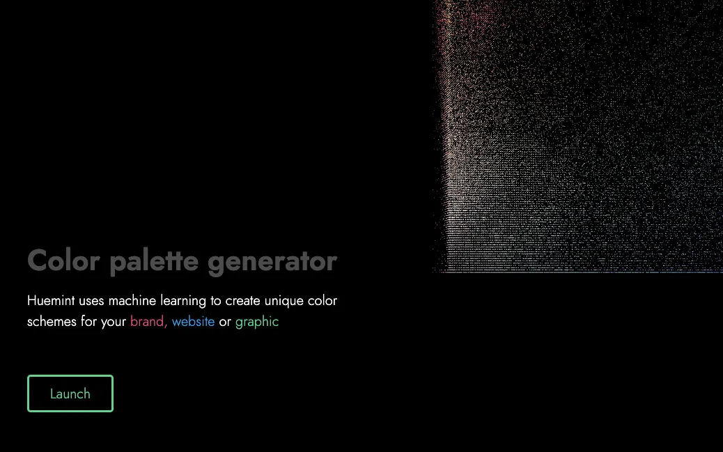 Huemint adalah generator palet warna. Aplikasi ini menggunakan pembelajaran mesin untuk membuat kombinasi warna yang unik untuk merekmu, situs web, atau grafik.
