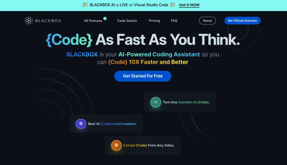 Blackbox merupakan tool yang sangat sederhana namun sangat kuat untuk menulis kode hanya dengan teks. Tulis komentar dan kode akan muncul di depanmu dalam hitungan detik.