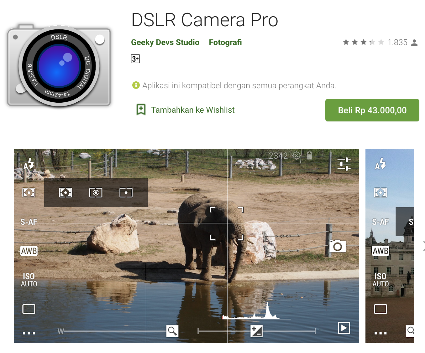 Apa yang terbesit di pikiranmu ketika mendengar kata manual camera? Tentunya kamera DSLR dan kamera profesional lainnya, kan? Aplikasi ini memiliki fitur yang mirip dengan DSLR.