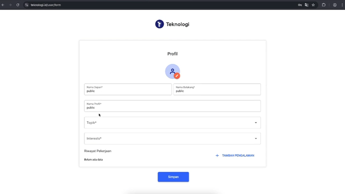 Sebelum menulis, lengkapi profil kamu agar tampil profesional.