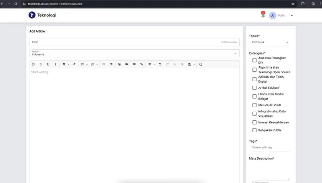 Setelah semua siap, kamu bisa mulai menulis artikel sendiri langsung dari dashboard.