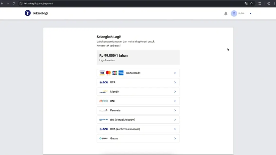 Langkah berikutnya, lakukan pembayaran paket Liga Inovator Rp 99.000/1 tahun: