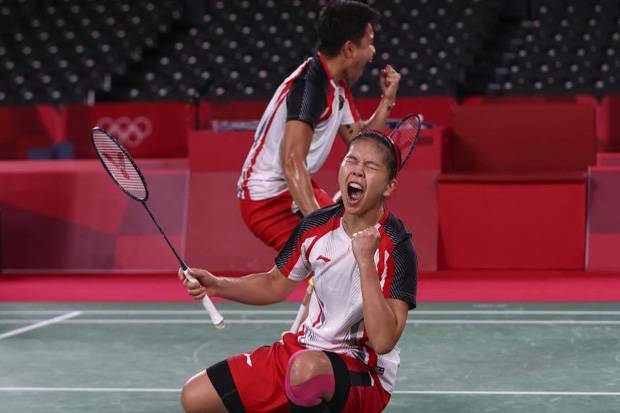 Pasangan Greysia/Apriyani jadi yang terbaik di nomor ganda putri cabang olahraga bulutangkis Olimpiade Tokyo 2020. Pasangan Indonesia tersebut meraih medali emas usai mengalahkan ganda putri asal Tiongkok, Chen Qingchen/Jia Yifan, dengan skor 21-19, 21-15 dalam laga final yang digelar di Musashino Forest Plaza.