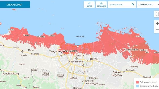 Data memprediksi bagian Jakarta Barat hingga Utara akan tenggelam. Itu mencakup wilayah Kota Tua, Ancol, Monas, Kalideres, hingga wilayah Banten pun akan terkena dampaknya.
