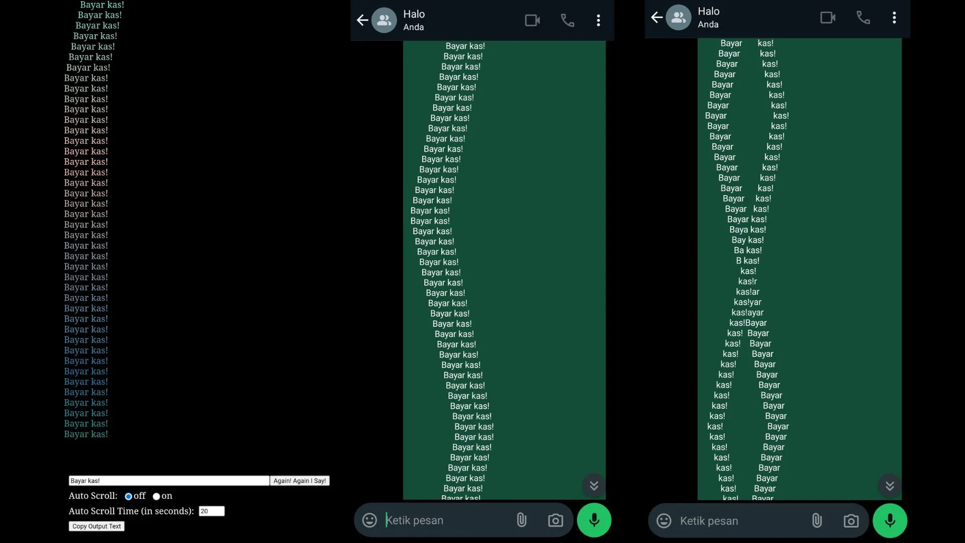 Jika Anda ingin memberikan kesan unik pada pesan WhatsApp-mu, Anda bisa menggunakan teks yang bergulir seperti yang tersedia di situs Patorjk.com. Situs ini menyediakan berbagai macam format teks kreatif, salah satunya efek scrolling yang sering digunakan untuk tampilan bergerak.
