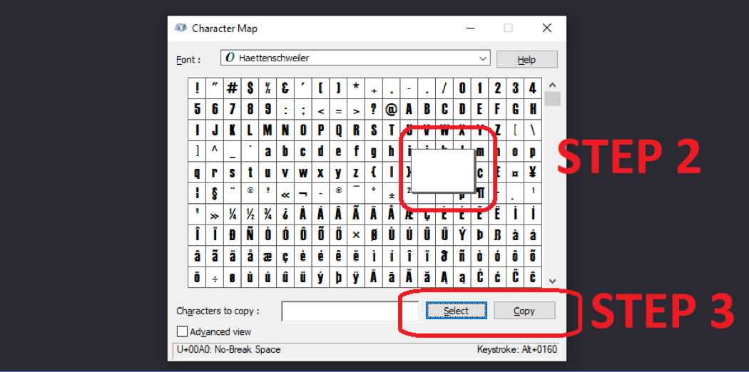 Metode manual mengharuskan Anda untuk menggunakan generator Character Map di Windows 10/11. Metode ini mungkin tidak cocok untuk semua pengguna, karena mengharuskan Anda menggunakan PC Windows. Namun, jika Anda memiliki PC Windows, inilah yang harus dilakukan:
