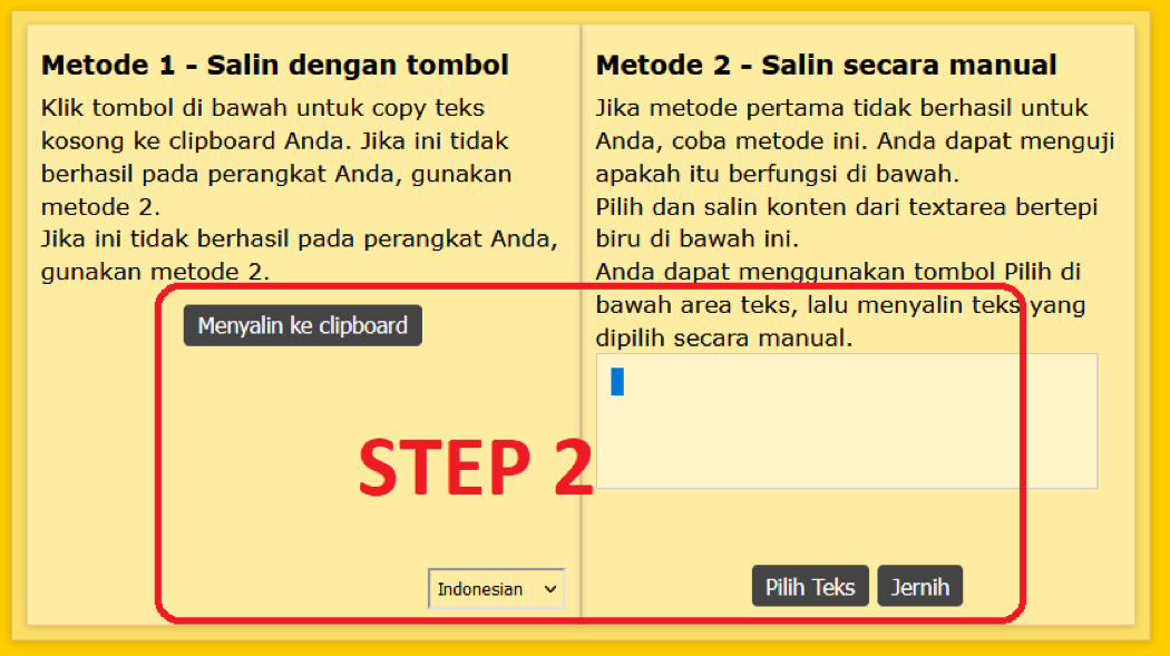 Langkah 2 : Salin ke clipboard/atau salin secara manual.