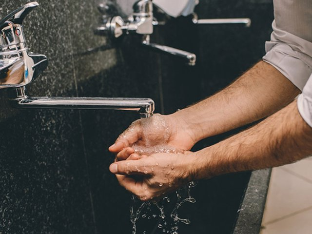 dinding atau cermin lalu mengusapkannya ke wajah, punggung tangan hingga siku