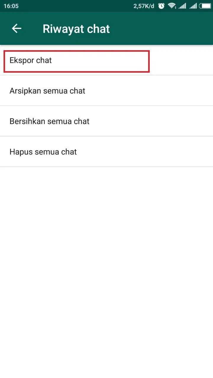 - Buka menu Setelan > Chat > Riwayat Chat.
