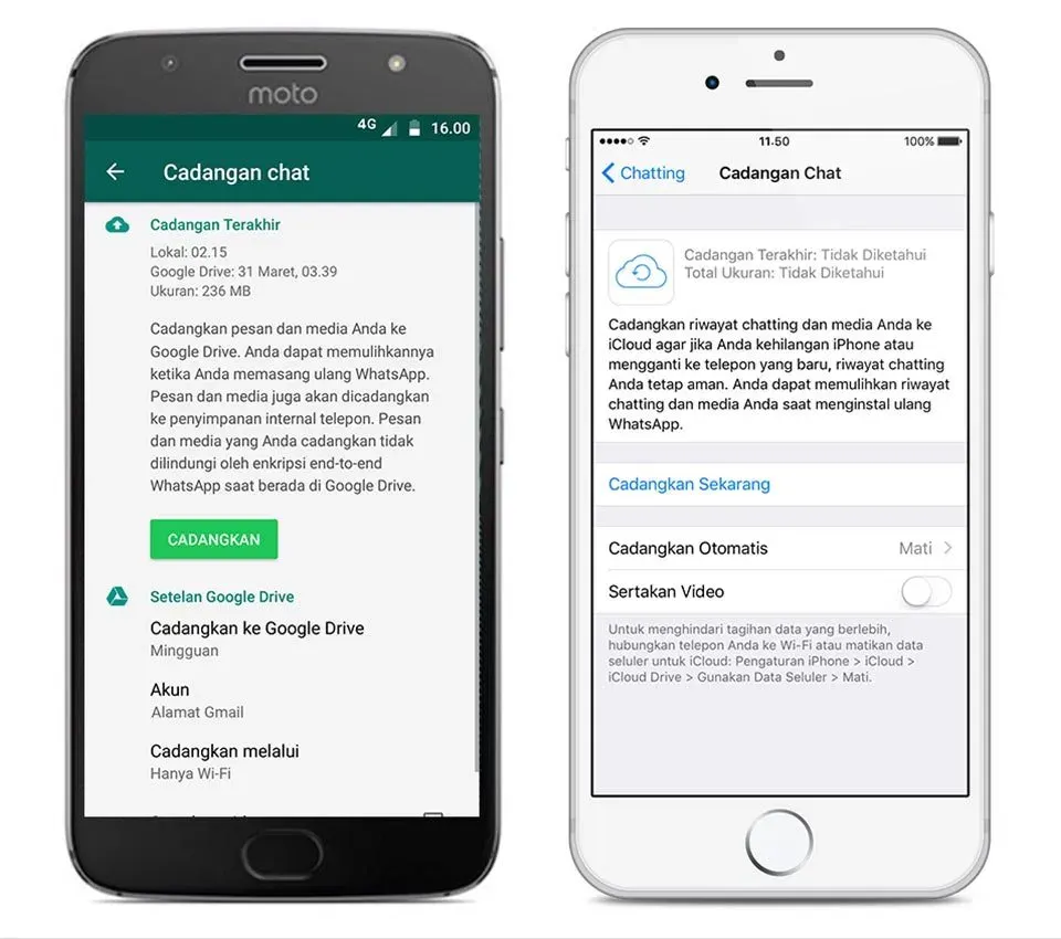 pencadangan video yang terdapat di bagian bawah menu Cadangan Chat.