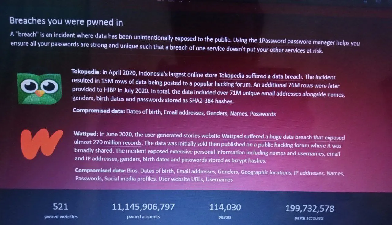HaveIBeenPwned.com. Situs ini dikelola oleh analis keamanan siber Troy Hunt.
