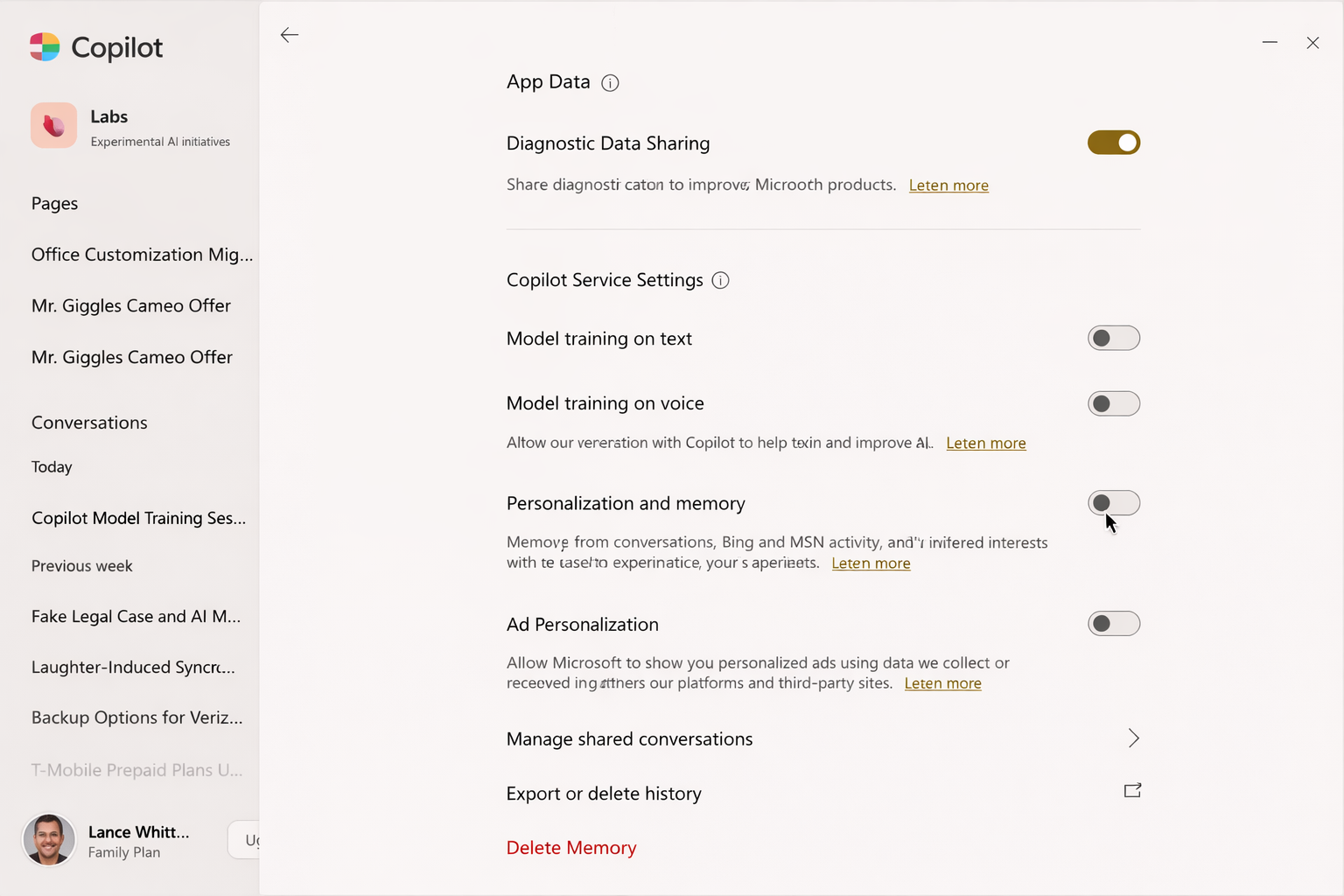 Salah satu pengaturan paling krusial adalah Model Training. Jika diaktifkan, percakapan teks maupun suara dengan Copilot dapat digunakan untuk melatih model AI. Meski data diklaim anonim, tetap ada keraguan. Banyak pengguna memilih menonaktifkan fitur ini agar interaksi mereka tidak dianalisis lebih lanjut.