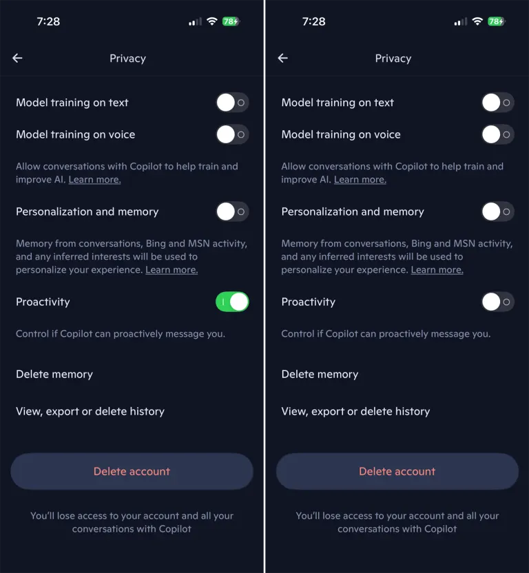 Pengaturan privasi Copilot dapat diakses melalui situs web, aplikasi desktop, maupun aplikasi mobile. Perubahan yang dilakukan pada satu platform akan otomatis berlaku di semua perangkat. Di Windows, pengguna cukup menekan ikon profil lalu memilih Settings dan Privacy. Di Mac, istilah yang digunakan adalah Data Control. Sementara di iOS dan Android, akses dilakukan melalui ikon hamburger, lalu masuk ke Account dan Privacy.