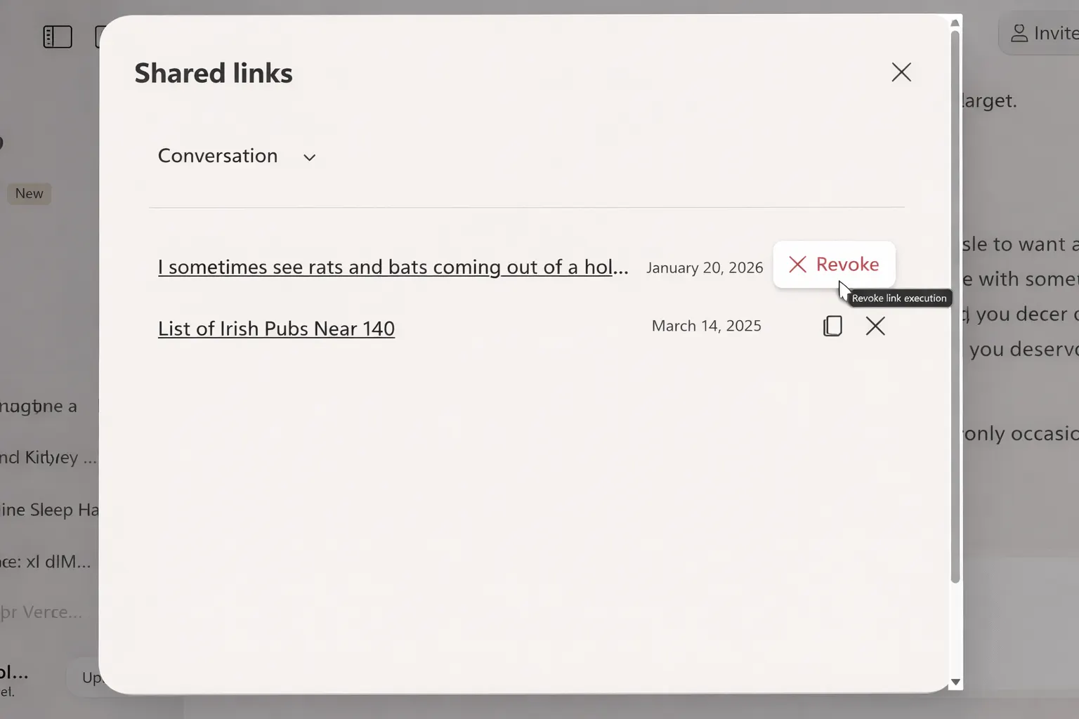 - Masuk ke Settings > Privacy > Manage Shared Conversations/Links.