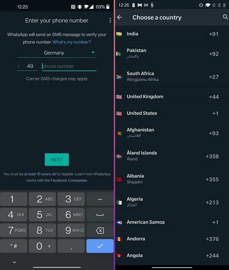 - Anda harus menyelesaikan verifikasi SMS awal untuk WhatsApp.