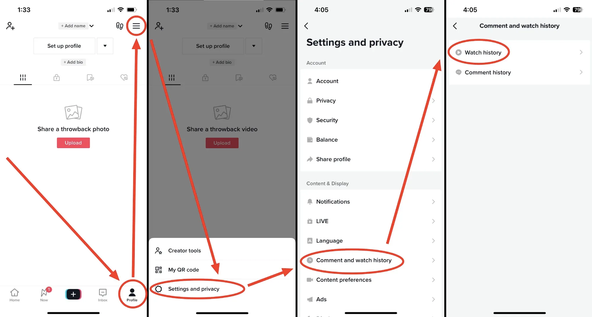 - Pada menu Konten dan Tampilan, pilih Riwayat Komentar dan Tontonan