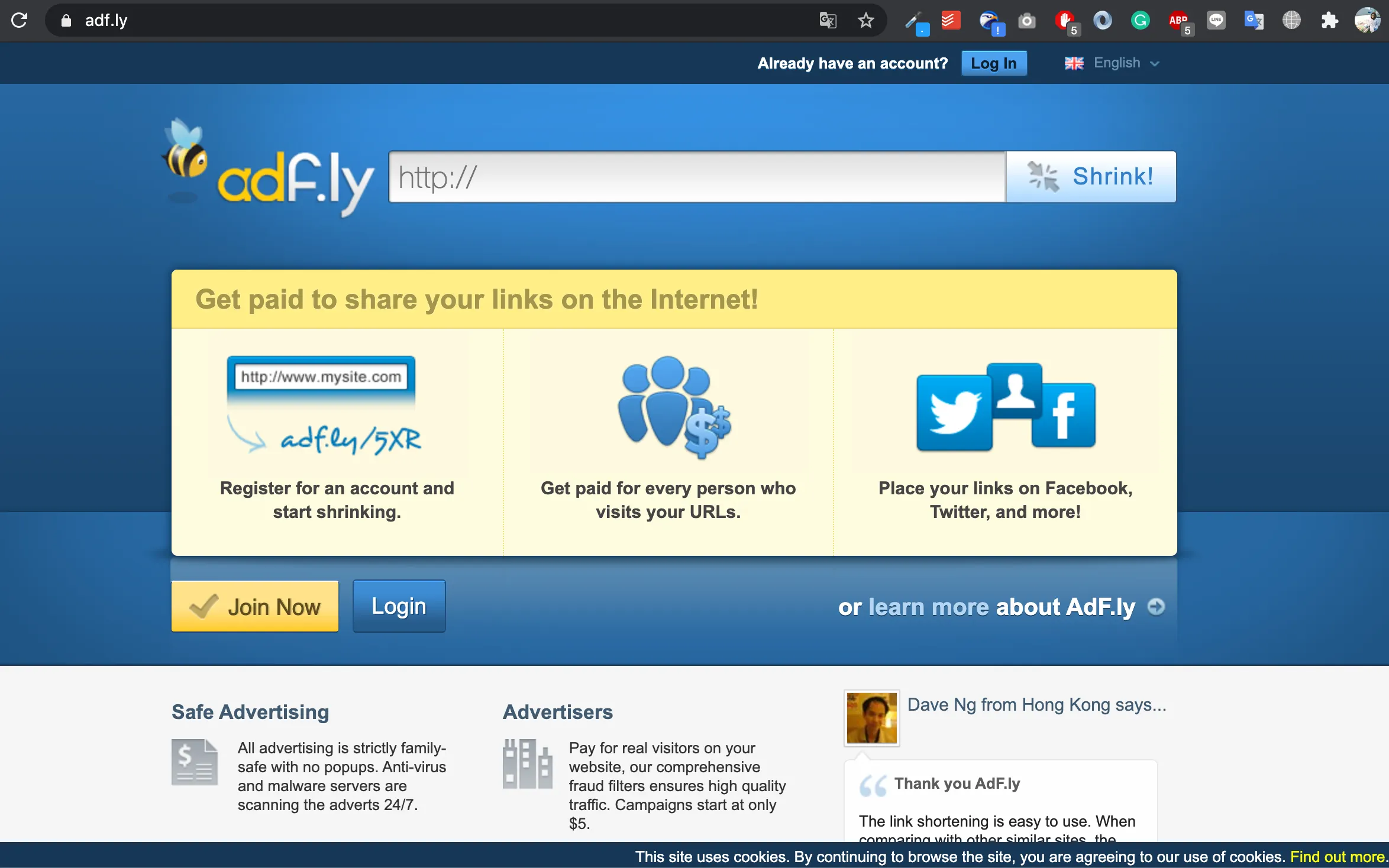 Nah ini nih yang menarik. Selain memendekkan link, Kamu juga bisa mendapatkan uang di sini loh! Ini karena AdFly akan membayar untuk setiap klik link AdFly yang kamu buat.
