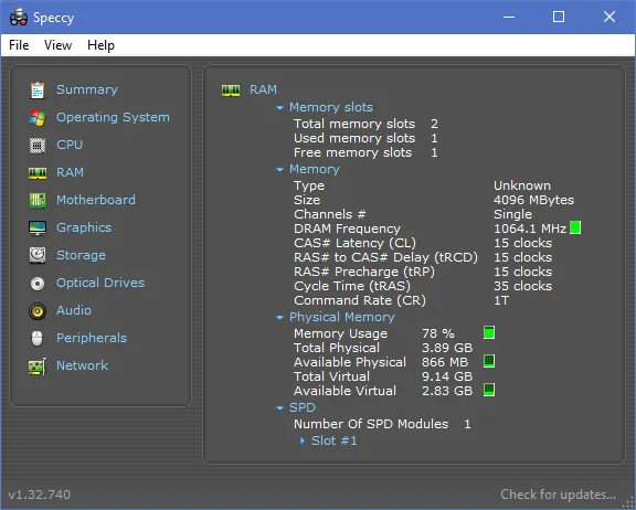 Selanjutnya adalah mengecek spesifikasi RAM yang ada di laptopmu. Salah satu cara mengecek spesifikasi RAM adalah menggunakan aplikasi. Salah satu aplikasi yang bisa kamu gunakan adalah Speecy.