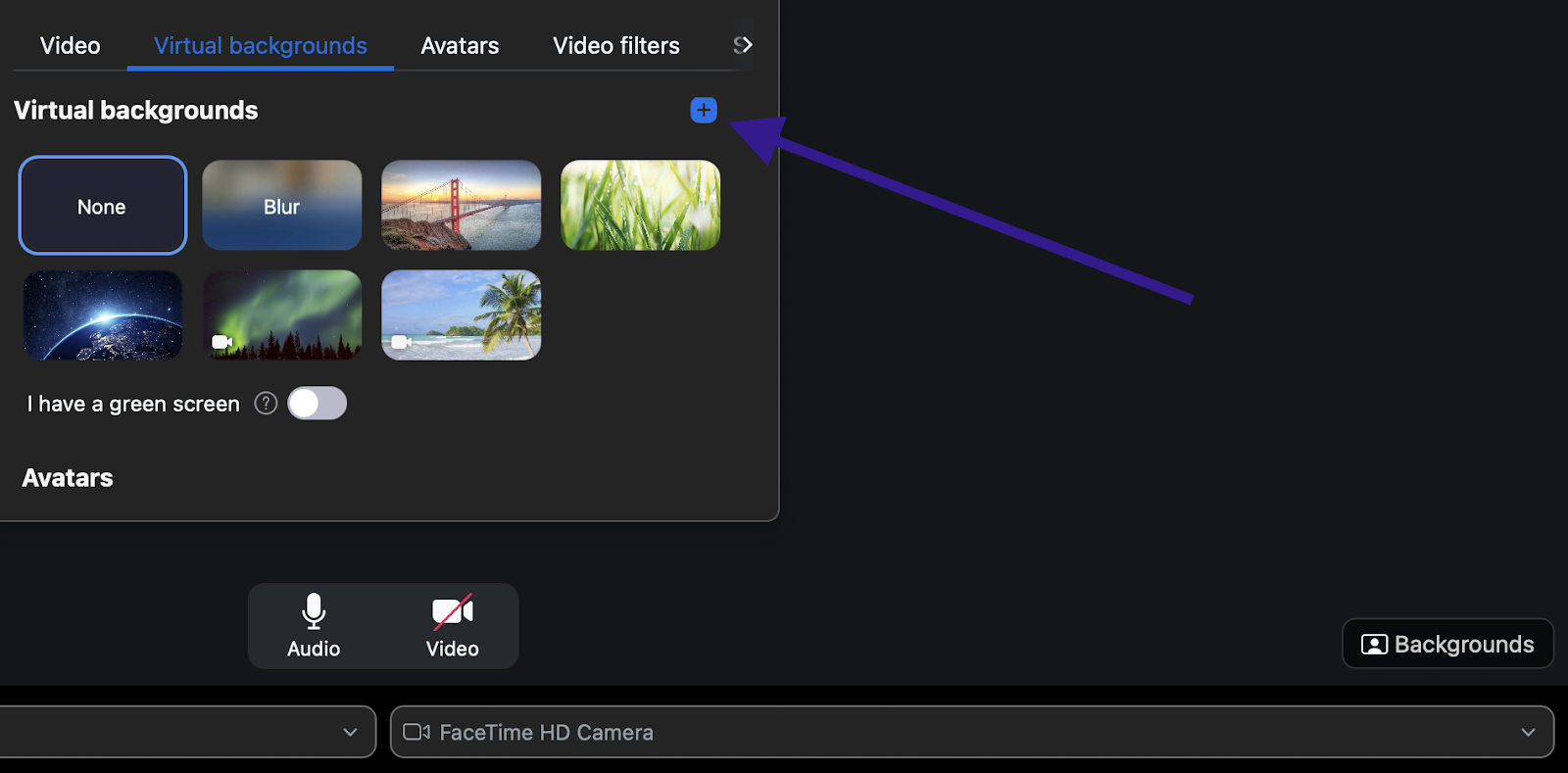 Pilih menu Background & Filters → tab Virtual Backgrounds.