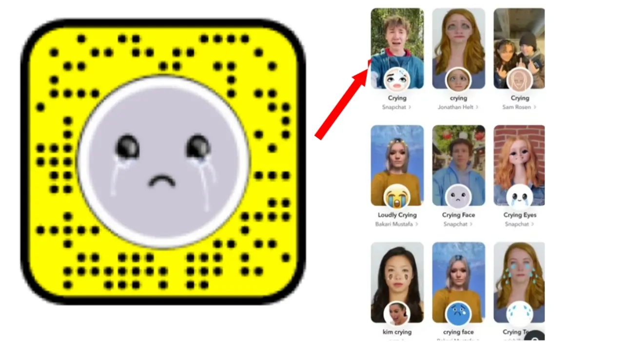 - Carilah filter “Crying”, selain itu kalian juga dapat memilih filter “Crying” di sebelah kanan yang ditandai dengan ikon “emoji”