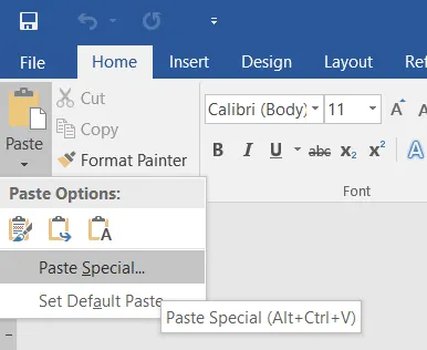 Tempatkan kursor di dokumen baru tempat teks akan ditautkan. Pada tab Home, pilih Special Paste dari panah Paste. Ketika muncul menu pop-up, klik 'Paste Link' dan kemudian pilih 'Formatted Text (RTF)'. Klik 'OK' untuk menempelkan teks yang ditautkan.