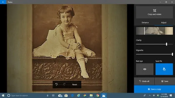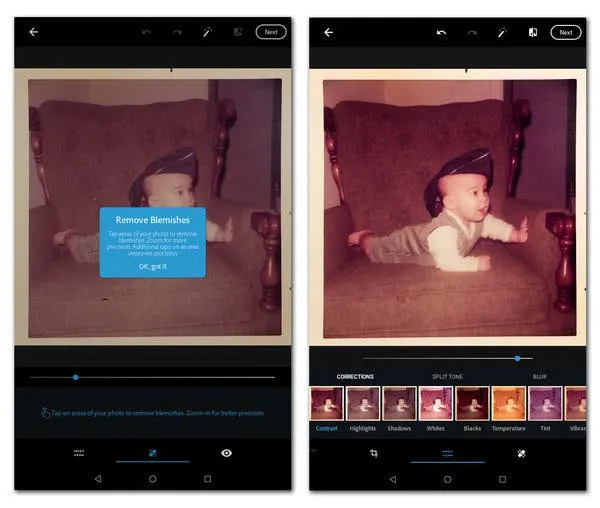 Aplikasi tersebut memiliki alat untuk menyesuaikan warna dan memotong ujung foto yang sobek, Apple Photos dan Microsoft Photosjuga memiliki alat untuk menghilangkan noda-noda.