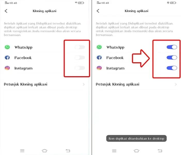 Setelah semua selesai, maka kamu tinggal mencari aplikasi yang telah digandakan tadi di halaman homescreen.