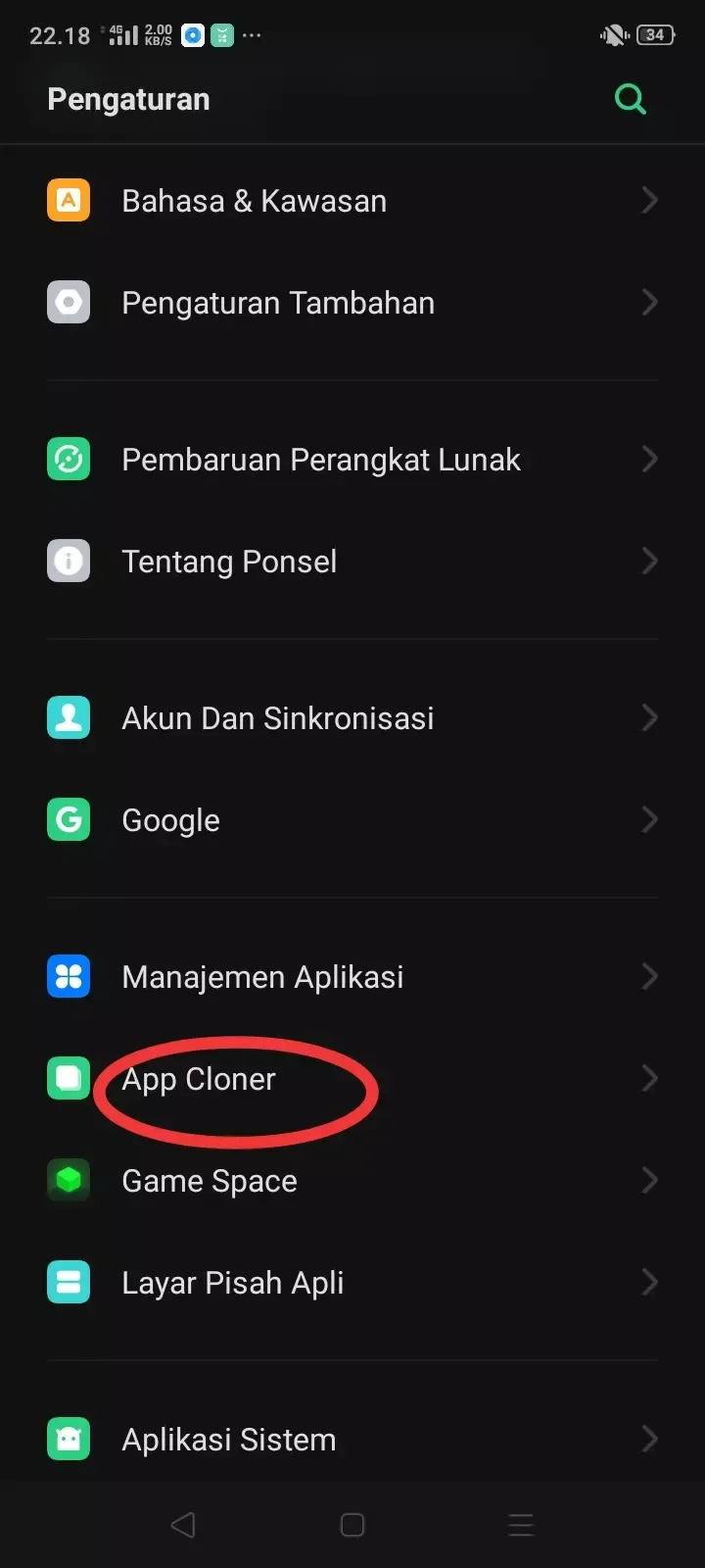 Nama aplikasi bawaan OPPO sama seperti realme untuk menggandakan aplikasi yaitu Clone Apps.