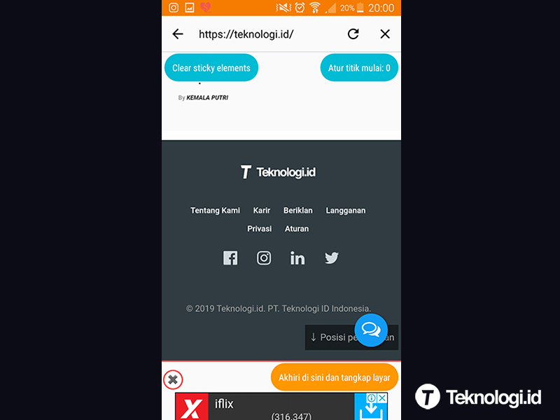 5. Kalau sudah gulir ke bawah hingga ke ujung website. Kemudian klik tombol oranye bertuliskan “Akhiri di sini dan tangkap layar”.