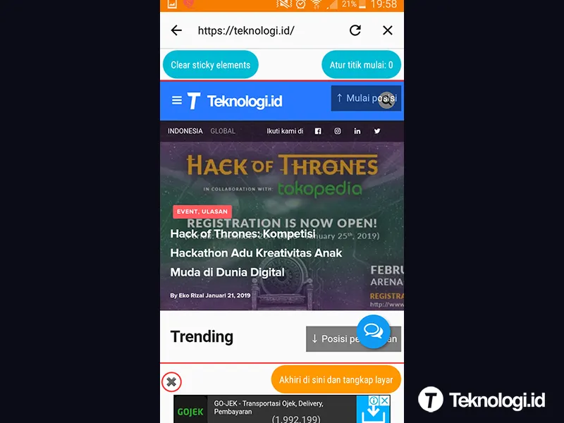 4. Kalau browser bawaan Longshot sudah terbuka. Segera masukkan url web di kolom yang telah disediakan. Berikut ini adalah tampilan Longshot saya ketika membuka web Teknologi.id.