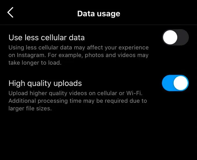 Oiya, jangan lupa untuk mengganti pengaturan Data Usage Instagram dengan mengaktifkan opsi "High Quality Uploads", agar video IG Story yang kalian unggah dapat menggunakan kualitas yang lebih tinggi.