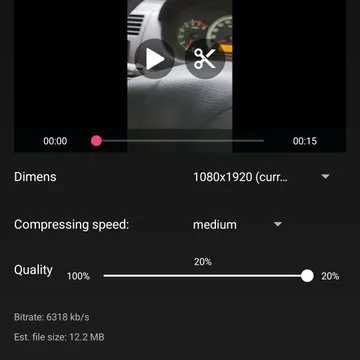 Jangan lupa untuk mengganti dimensinya menjadi 1080x1920 pixel, compressing speed ganti menjadi medium, dan quality-nya tentukan di angka 20% saja.
