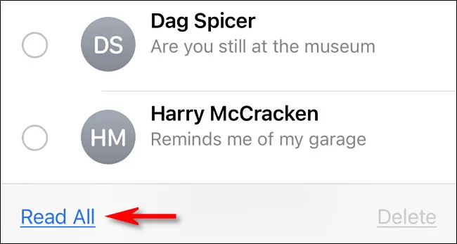 Pesan-pesan kini berada pada mode “Edit”. Namun, kamu tidak harus menangani pesan-pesan tersebut satu per satu. Cukup klik tombol “Read All” yang berada di sudut kiri bawah layar pada iPhone dan iPad.