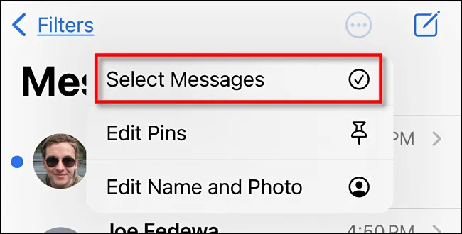 Pada menu pop-up yang muncul, ketuk “Select Messages.”