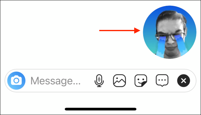 Dari sini akan terlihat opsi baru untuk merekam dan mengirim selfie sticker. Pegang ponsel pada posisi yang membuat seluruh wajah bisa terlihat pada preview stiker. Secara otomatis, Instagram akan mengganti background dengan warna gradasi.