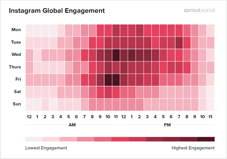 - Dalam satu hari, engagement paling kecil di Instagram adalah pukul 11 malam hingga 3 dini hari.