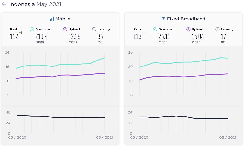 koneksi internet global merilis Speedtest Global Index untuk Mei 2021. Kabar